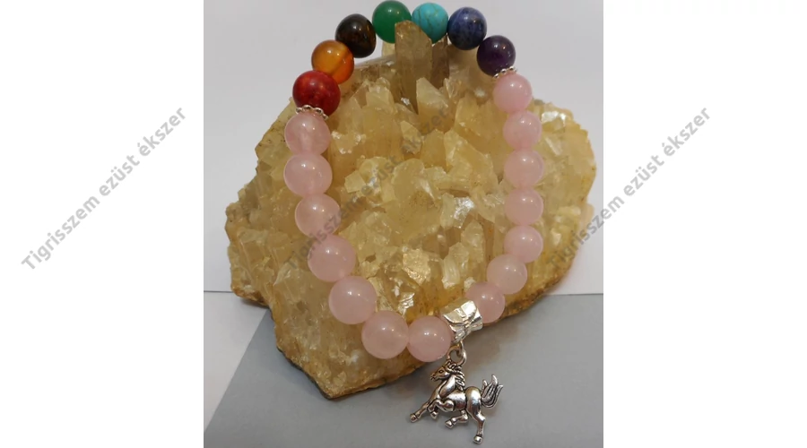 Ásvány karkötő, 7 csakra,csiszolt szemes+rózsakvarc
