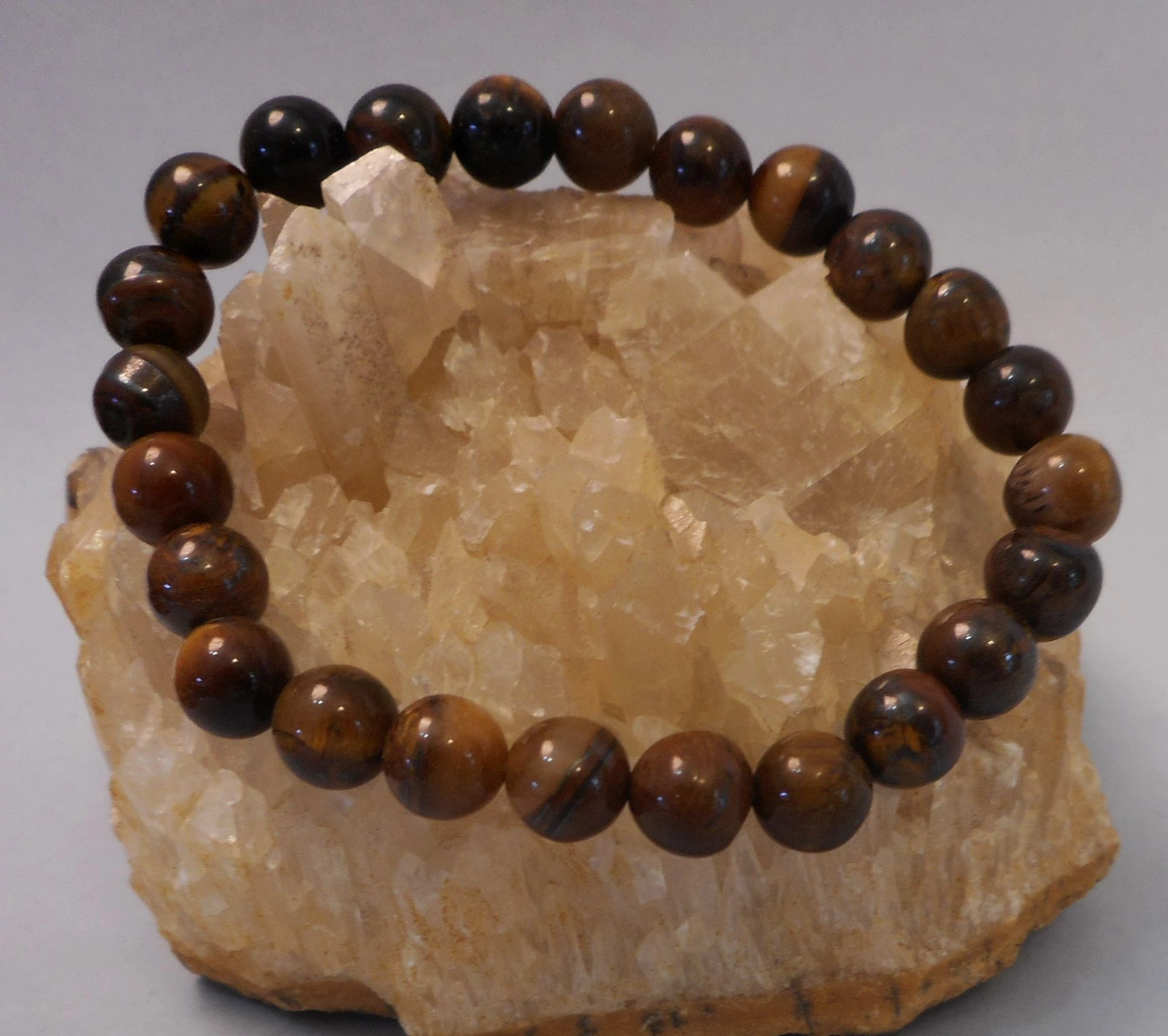 8 mm-es kerek szemekre csiszolt TIGRISSZEM ásvány karkötő. Gumis damilra fűzve.19 cm |