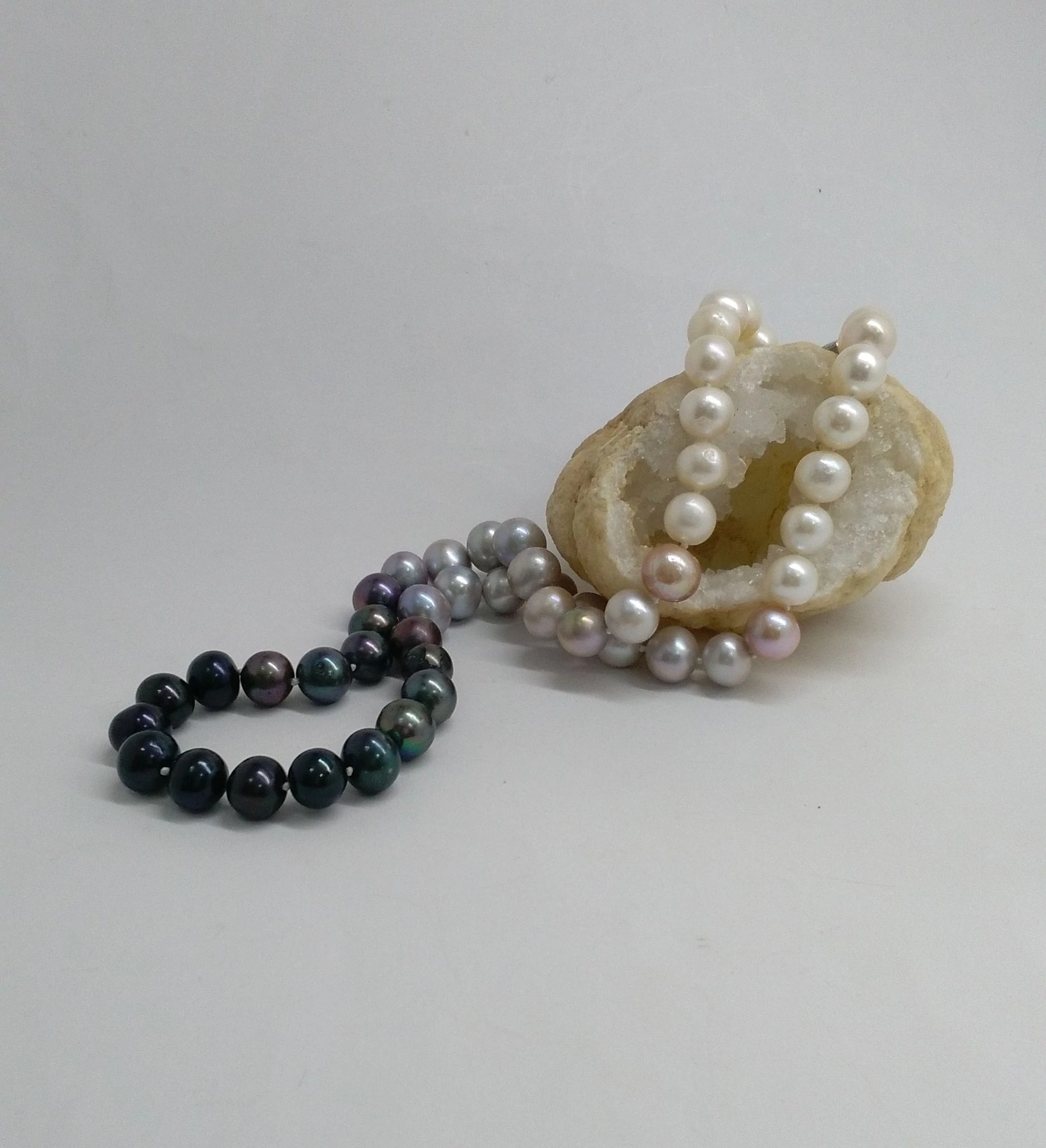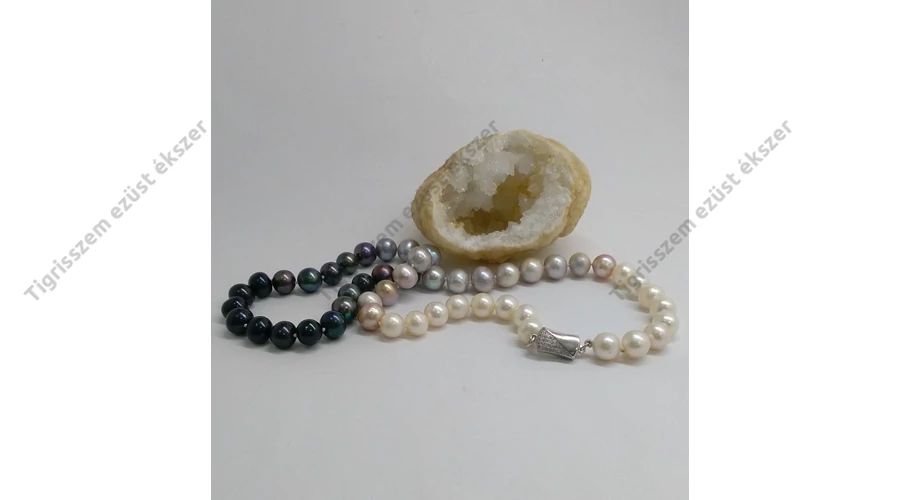 Különlegesen szép,valódi, multicolor ÉDESVÍZI TENYÉSZTETT GYÖNGY nyaklánc.50 cm hosszú. A szemek 8-10 mm nagyságban változóak,kissé amorf nem szabályos kerek(amilyenre a természet alkotta!) Jó minőségű szemekből van összeállítva.A kapcsolója ezüst,amely pici apró,fehér cirkónia kövekkel van kirakva.Biztonságos ,erős zár. Magyar fémjelzéssel ellátva.925-ös sterling ezüst |
