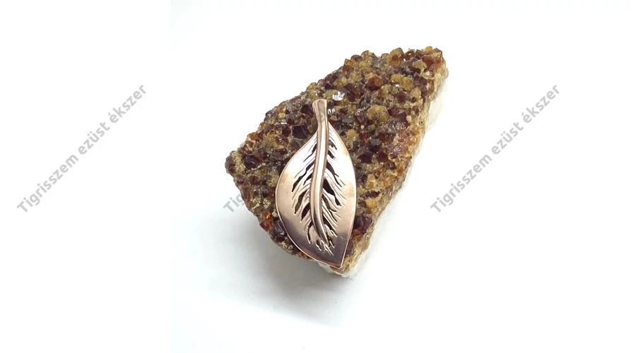 Nagyon különleges ezüst levél medál a felületén ROSE GOLD(rózsa arany ) bevonattal.Áttört minta,minőségi kidolgozás. 925-ös sterling ezüst Magyar fémjel. Megfelelő használat mellett tartós az aranyozás.Kerülni kell a vegyszerek,gyógyfürdők használatát az ékszer viselésekor. |