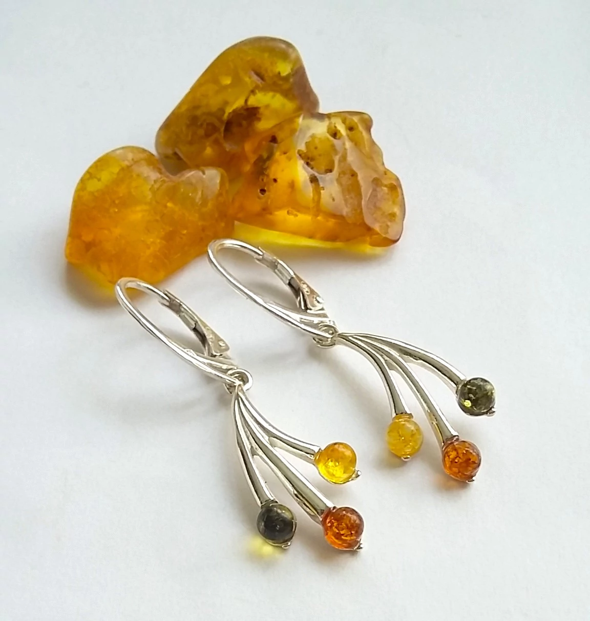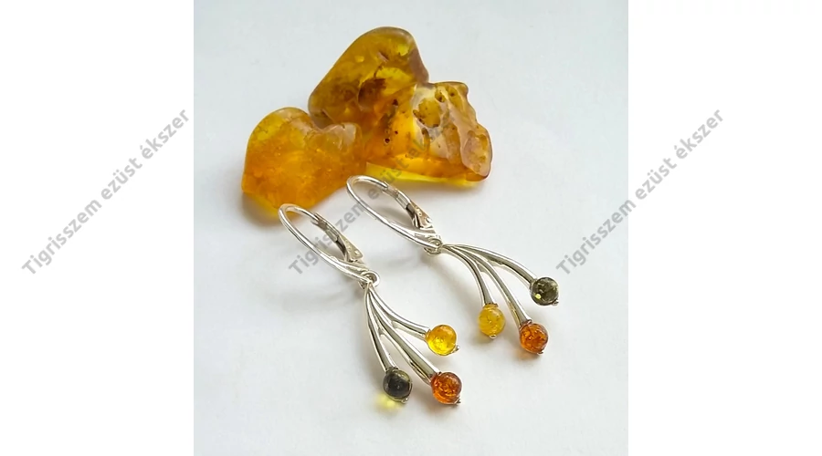 Ezüst borostyán fülbevaló,három színű