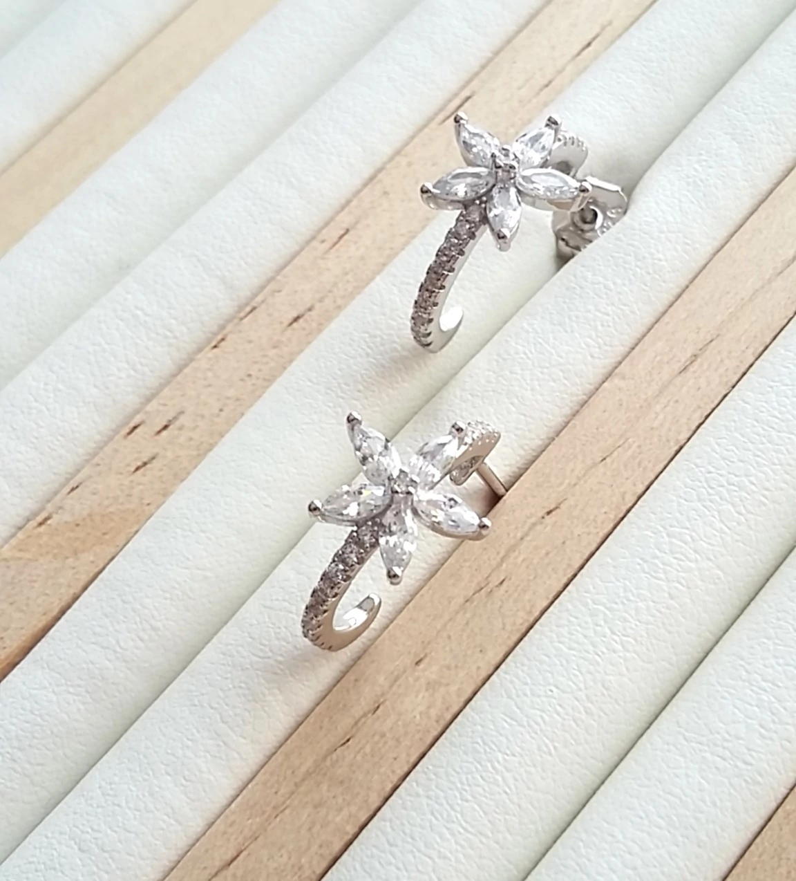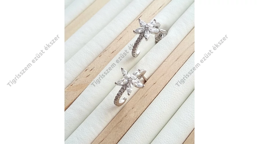 Ezüst fél karika fülbevaló cirkónia kővel