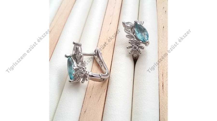 Ezüst fülbevaló kék és fehér cirkkóniával