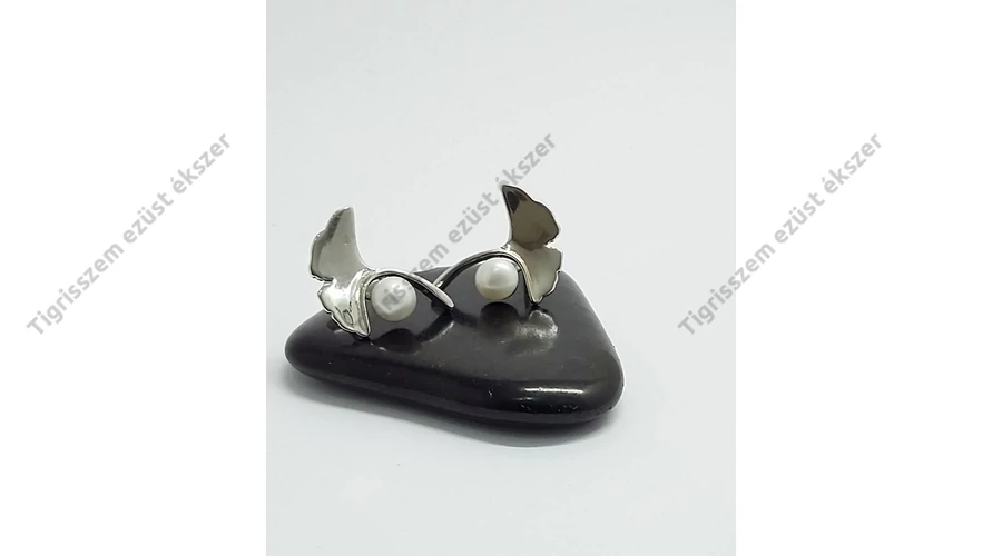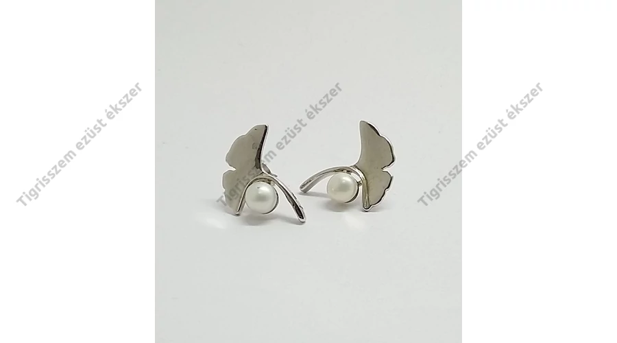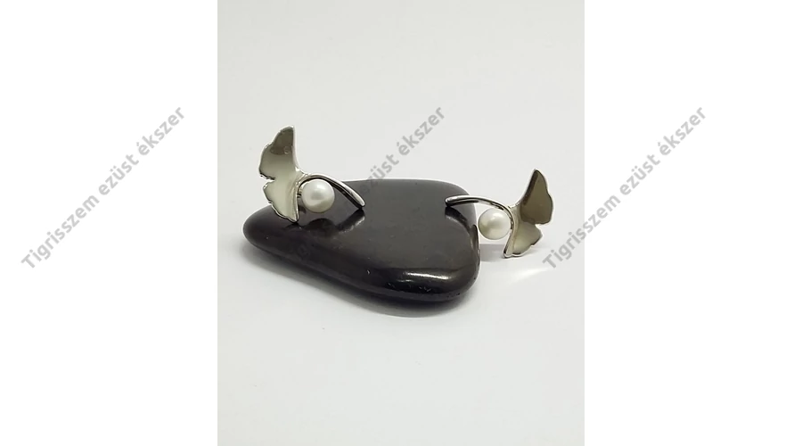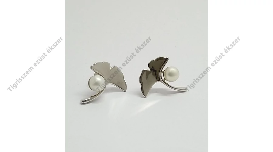 Ezüst fülbevaló BILOBA+GYÖNGY