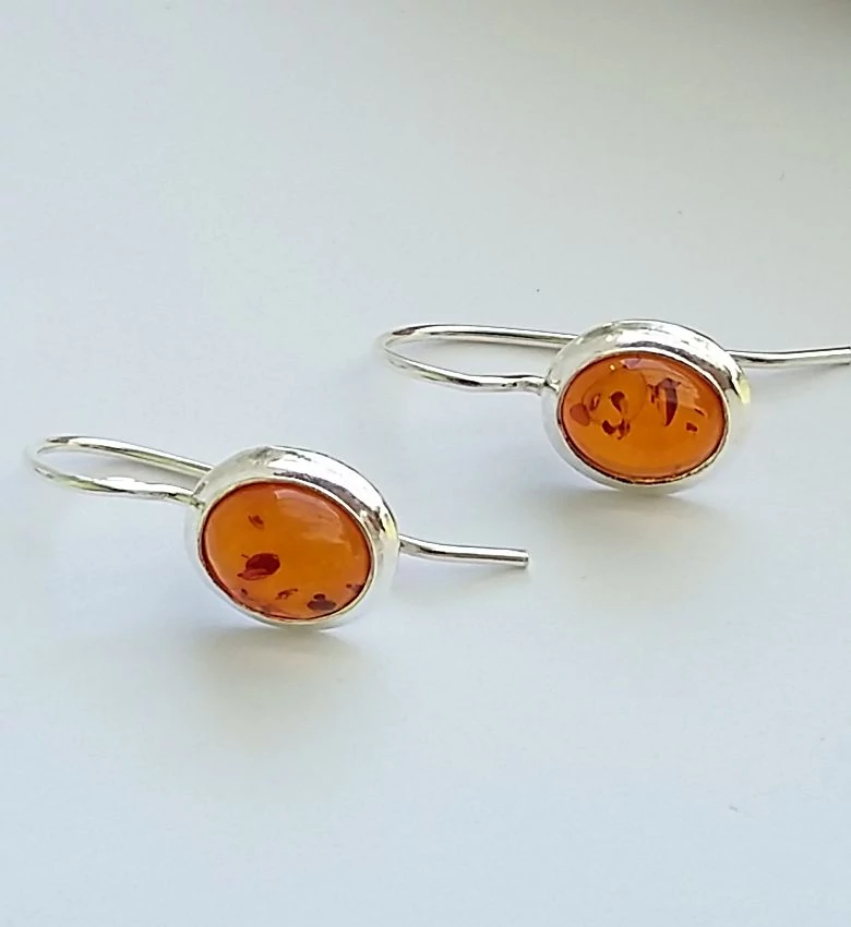 Gyönyörű ezüst fülbevaló kaboson csiszolású,ovális forma BALTI BOROSTYÁNNAL. Modern,letisztult forma egyedi darab.Beakasztós,kapcsos fülbevaló. Minőségi kidolgozás. 925-ös sterling ezüst,magyar fémjellel. |