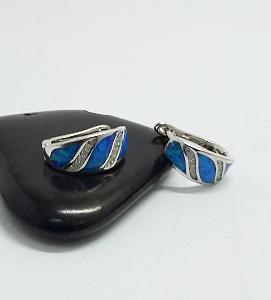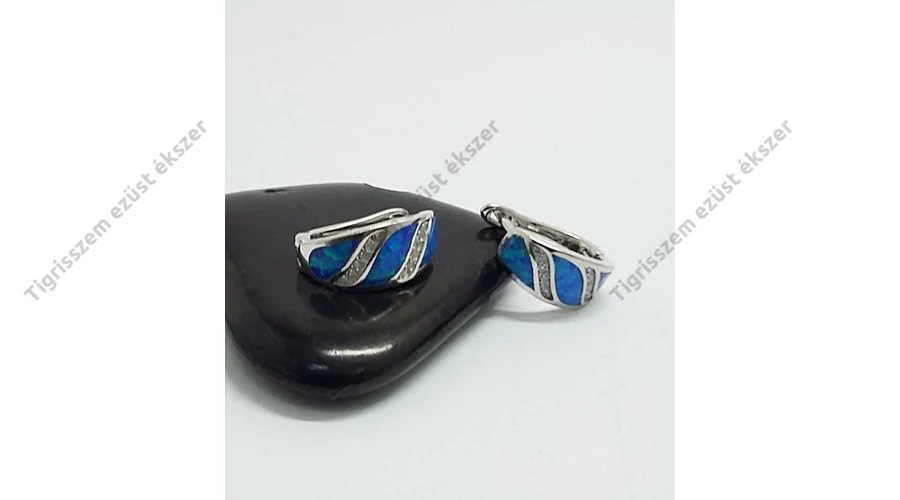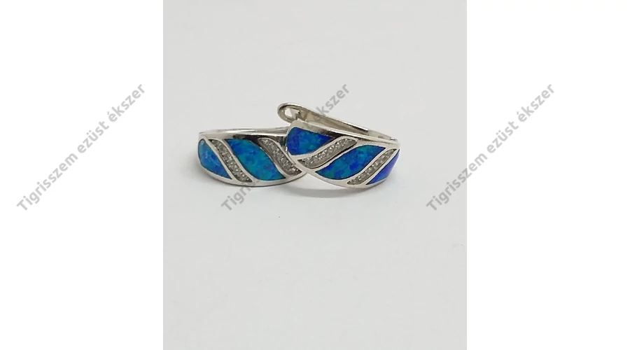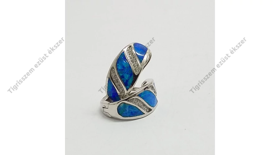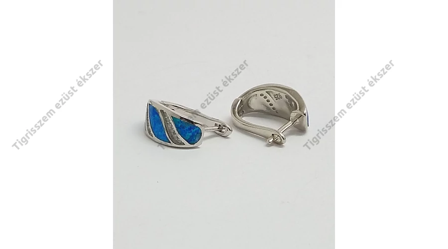 Gyönyörű,különleges, ezüst fülbevaló francia kapcsos kék színű opállal,ródiumos. Minőségi kidolgozás. Magyar fémjelzéssel ellátva.925-ös sterling ezüst. |