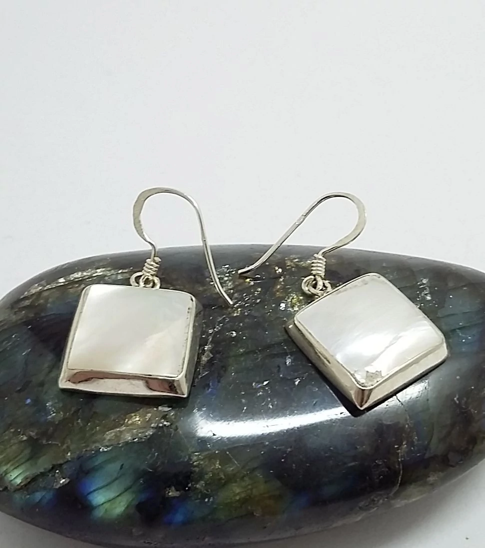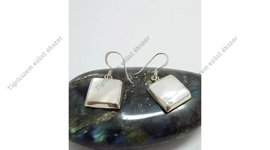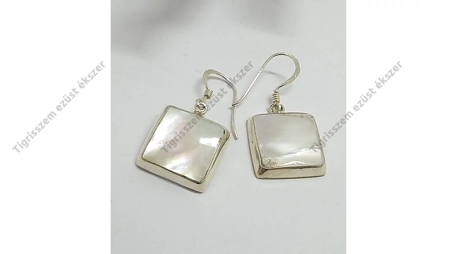 Ezüst fülbevaló gyöngyházzal,szögletes