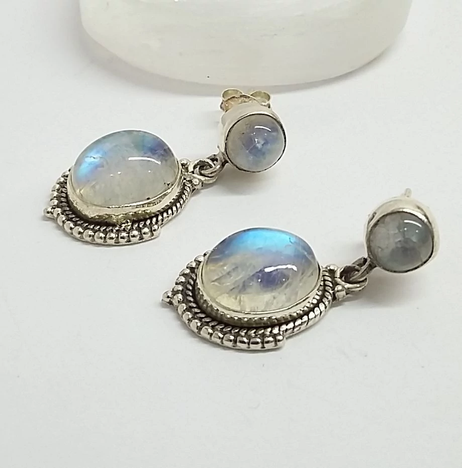 Ezüst fülbevaló holdkővel