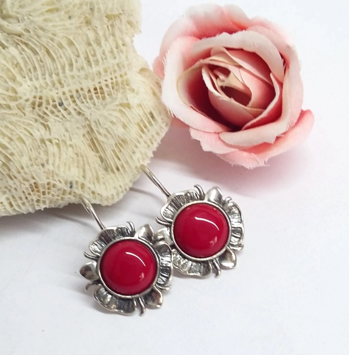 Gyönyörűen kidolgozott ezüst fülbevaló egy nagy méretű korall kővel.Beakasztós,kapcsos.Antikolt. Egyedi,különleges fazon! 925-ös sterling ezüst,magyar fémjel TUDUNK ADNI HOZZÁ MEDÁLT IS PLUSZBAN! |