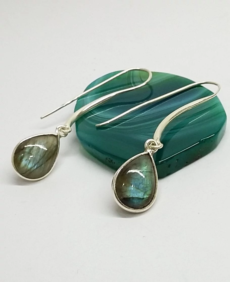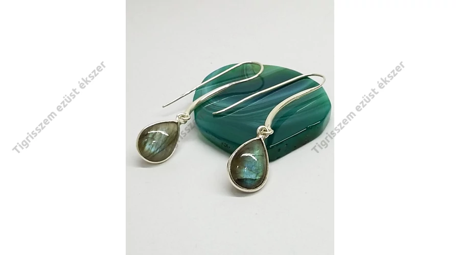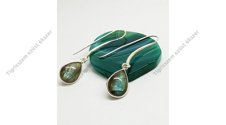 Gyönyörű ezüst fülbevaló labradorit kővel. Beakasztós,csüngős fazon. Minőségi kidolgozás. Magyar fémjel.925-ös sterling ezüst.