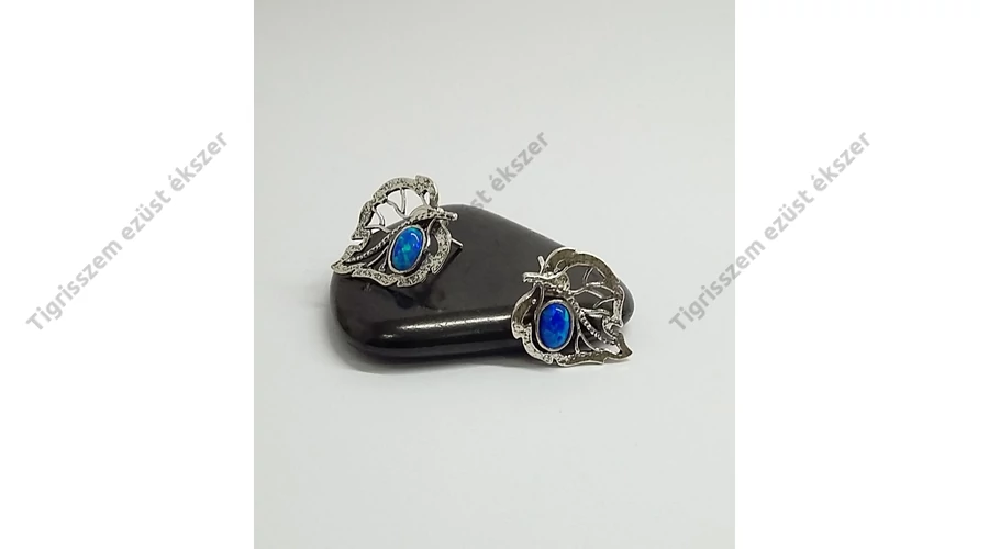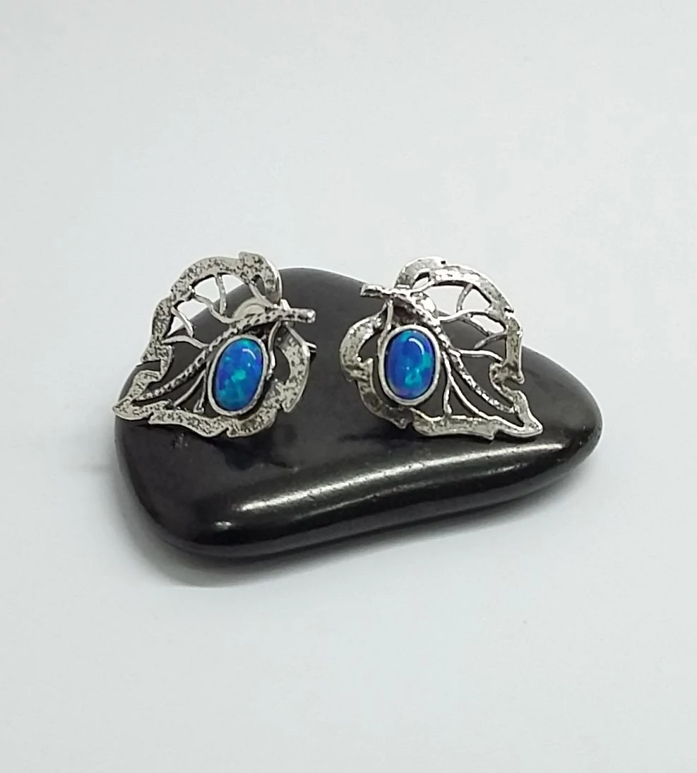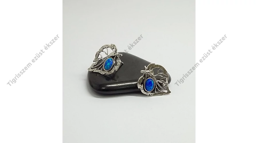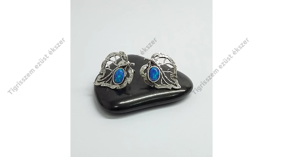 Ezüst fülbevaló opállal,levél