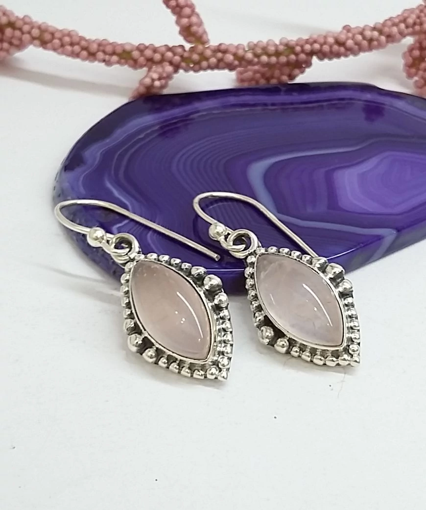 Gyönyörűen kidolgozott ezüst csüngős fülbevaló RÓZSAKVARC kővel. Antikolt,különleges,egyedi kézzel készült fazon.Beakasztós. Nagyon elegáns! Magyar fémjellel,925-ös sterling ezüst |