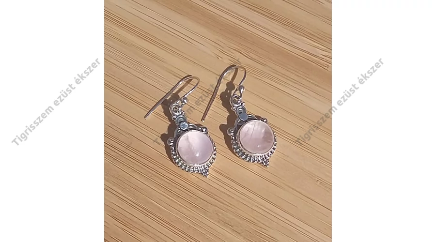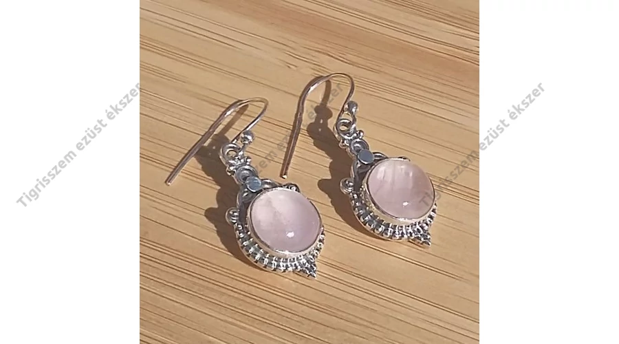 Ezüst fülbevaló rózsakvarc,antikolt kerek