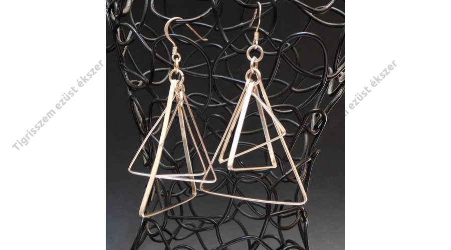 Ezüst fülbevaló tripla háromszög antikolt ,csüngős