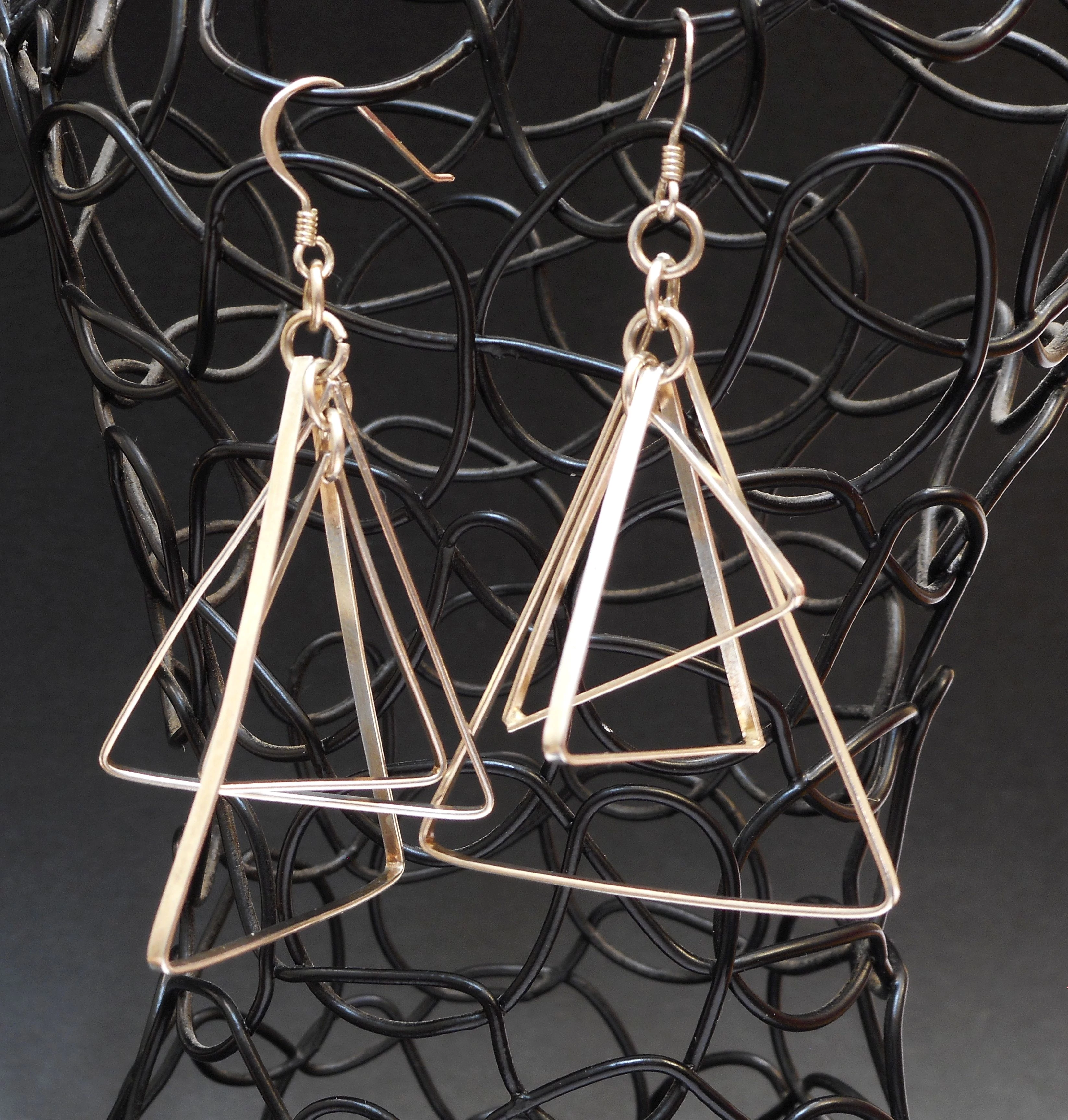 Különleges,egyedi antikolt ezüst fülbevaló. Tripla háromszög forma,csüngős-akasztós.(40x45mm,30x35mm,20x25mm-es). Minőségi kidolgozás. 925-ös finomság. Magyar fémjellel ellátva. |