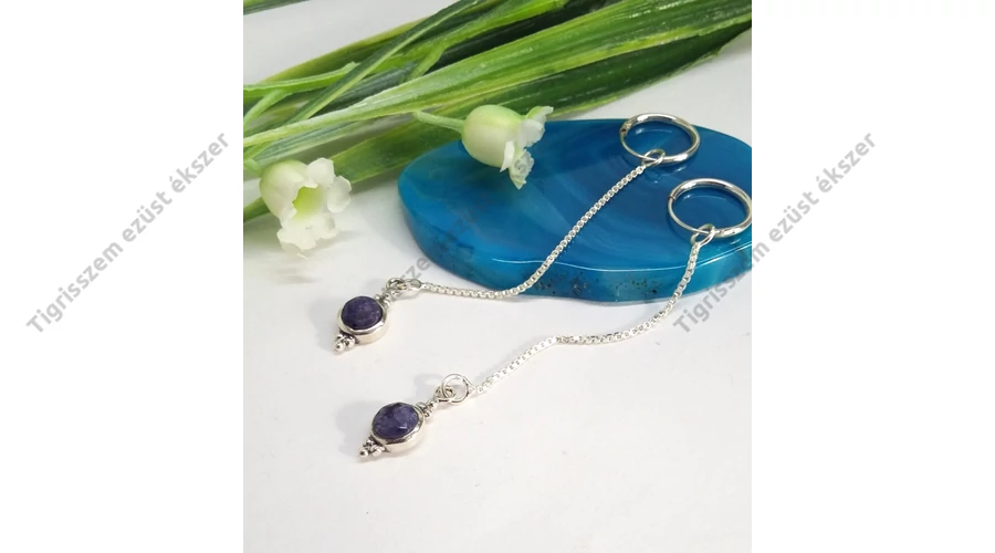Ezüst fülbevaló zafír kővel