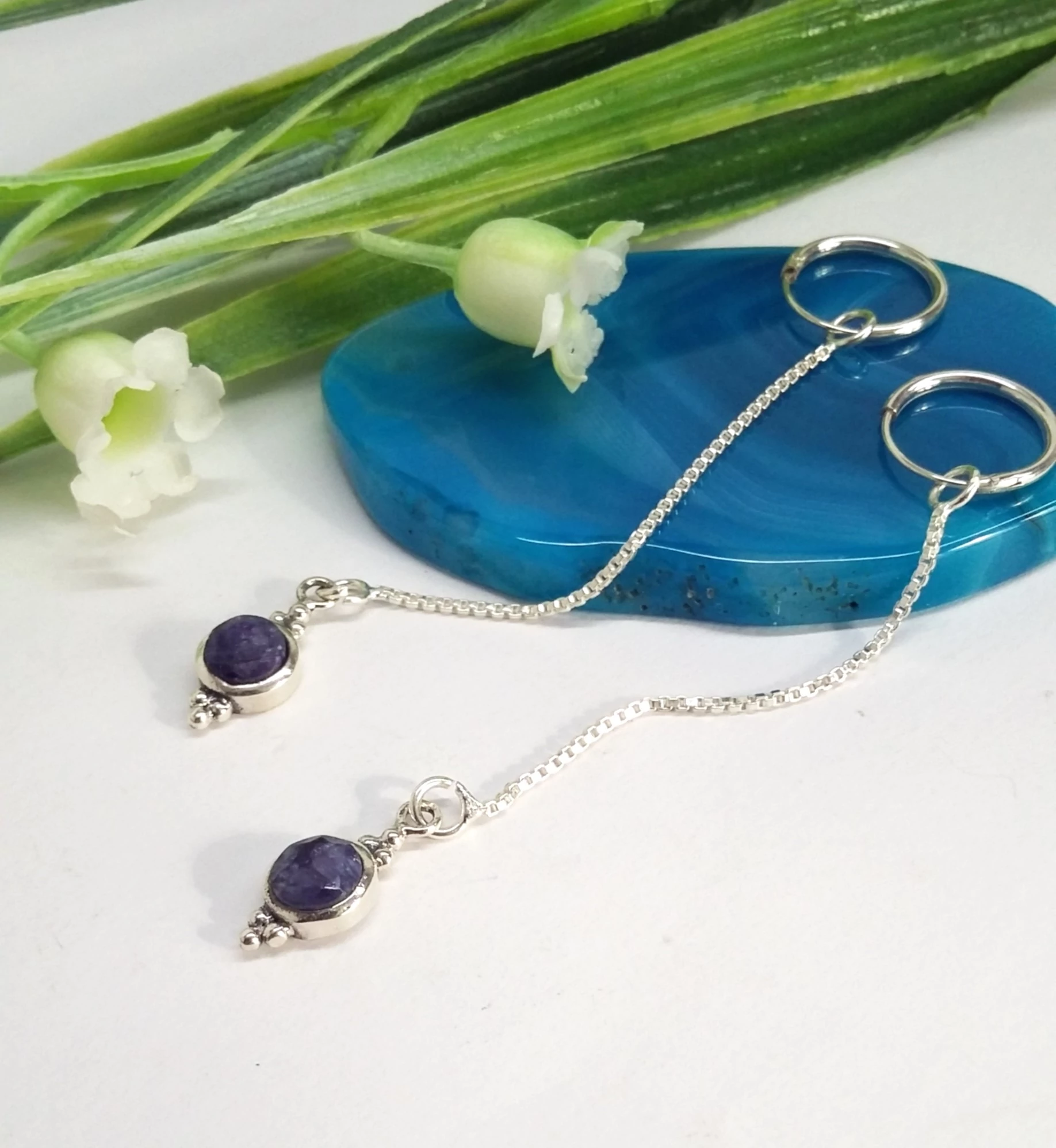 Gyönyörű csüngős,láncos ezüst fülbevaló valódi zafr kővel. Divatos,fiatalos! Egyedi,különleges fazon! 925-ös sterling ezüst,magyar fémjel |