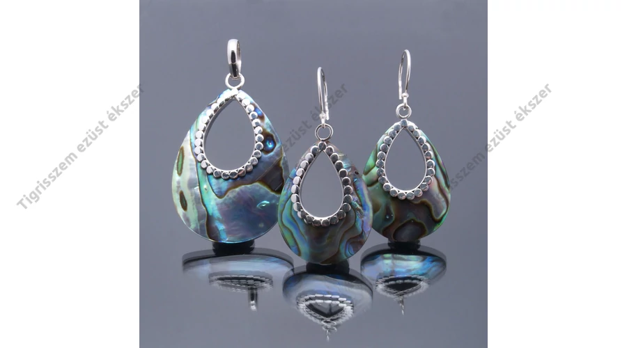 Ezüst fülbevaló+medál szett, PÁVA KAGYLÓ