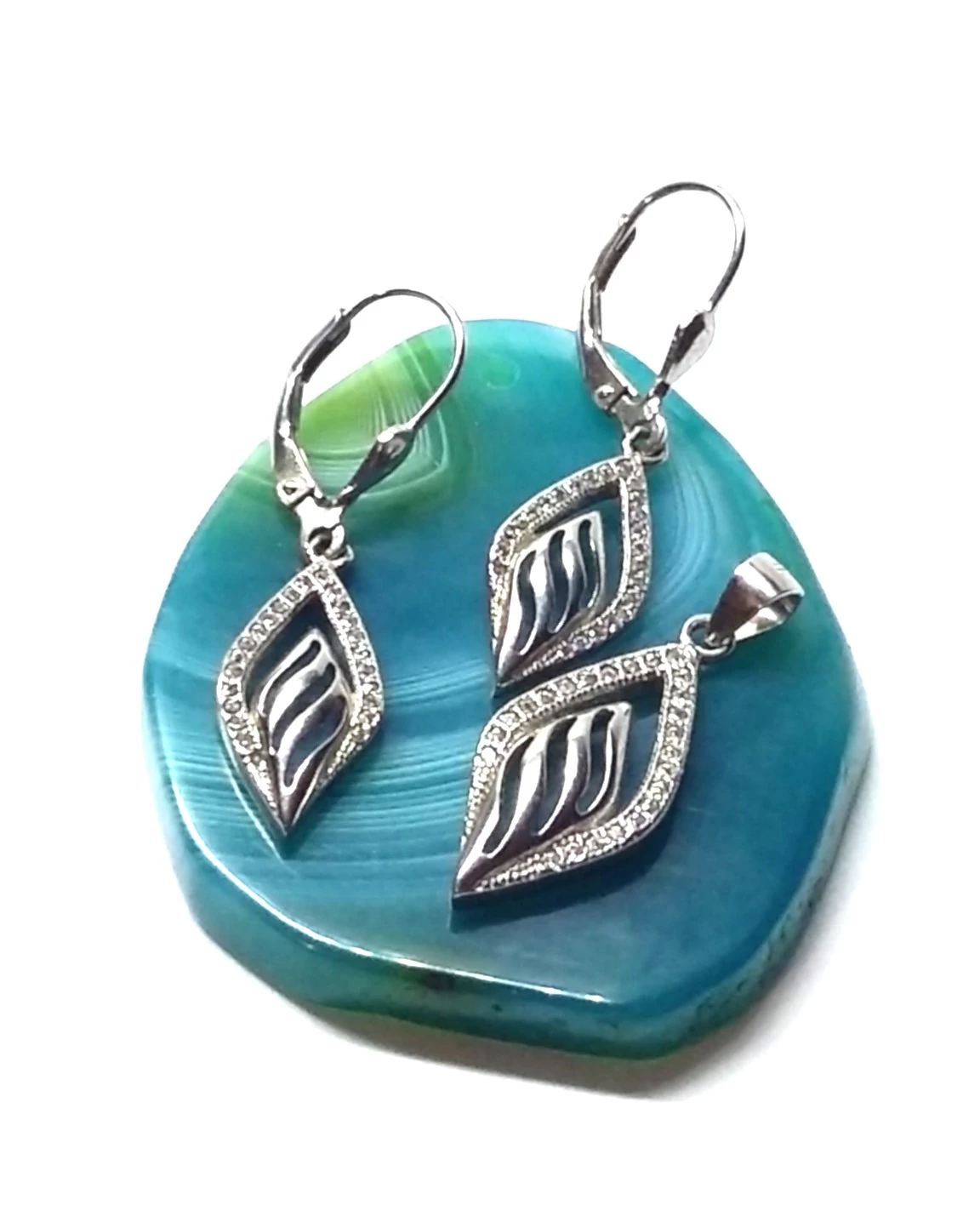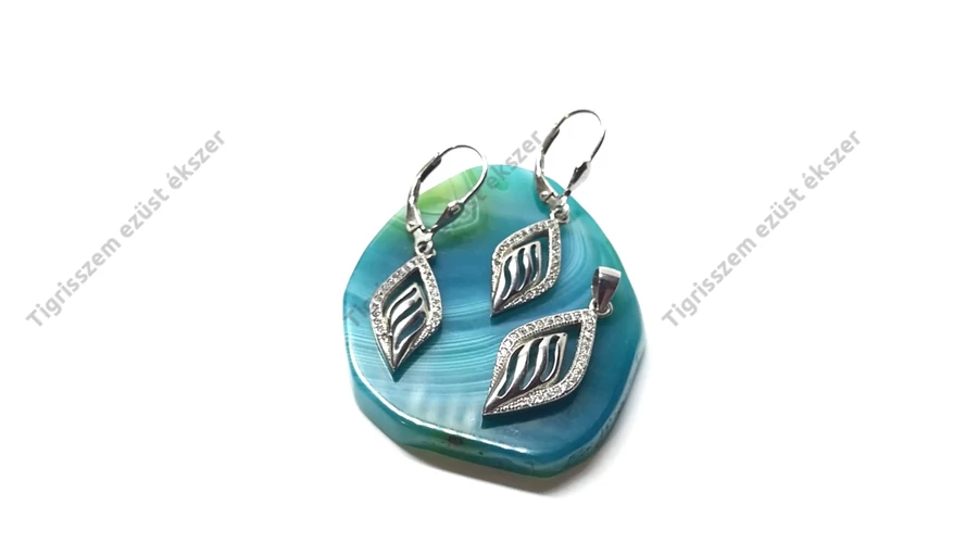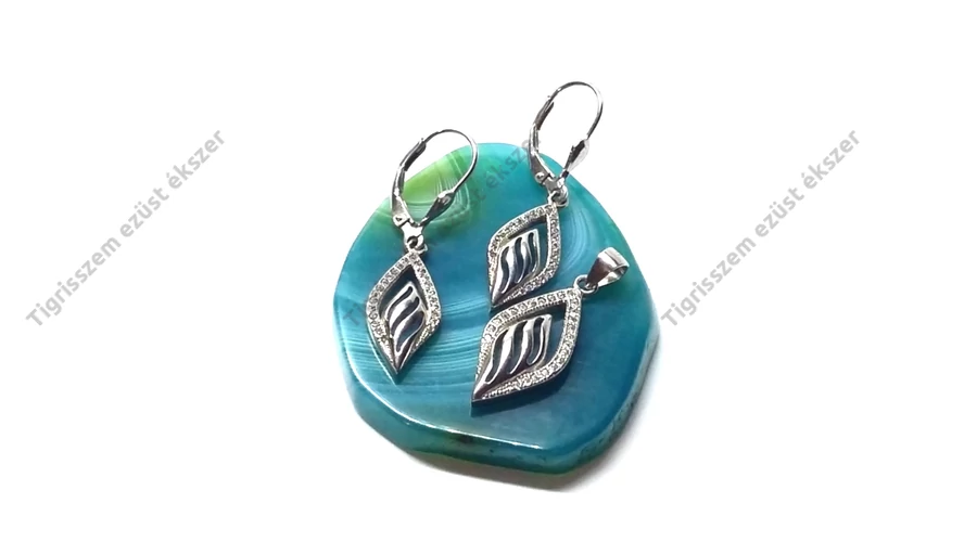 Ezüst fülbevaló+medál szett cirkónia kövekkel