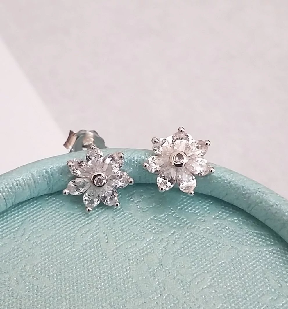 Gyönyörűen kidolgozott ezüst fülbevaló stekkeres,cirkónia kövekkel,virág forma. Ródiumos.Minőségi kidolgozás. 925-ös finomság. Magyar fémjellel ellátva.
