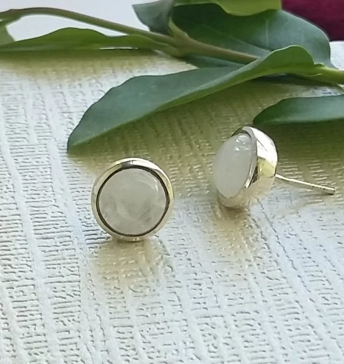 Gyönyörű ezüst fülsróf,VALÓDI HOLDKŐVEL Bedugós,stekkeres.Kaboson csiszolású kerek kő. Minőségi kidolgozás. 925-ös finomság. Magyar fémjellel ellátva.
