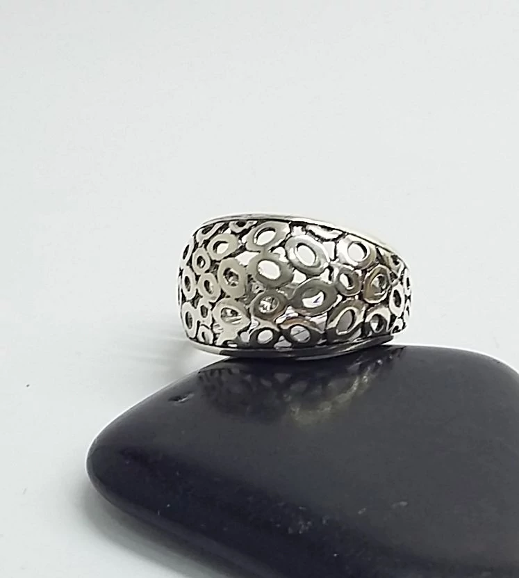 Gyönyörűen kidolgozott női ezüst gyűrű.Áttört minta.Domború fejrész. Minőségi kidolgozás.925-ös sterling ezüst Magyar fémjel |