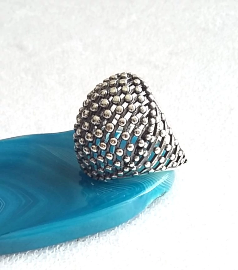 Gyönyörű,különleges ezüst gyűrű! Áttört mintás,domború kő nélküli,antikolt. 62 -es méret 925-ös sterling ezüst, Magyar fémjel |