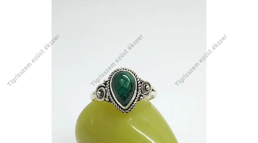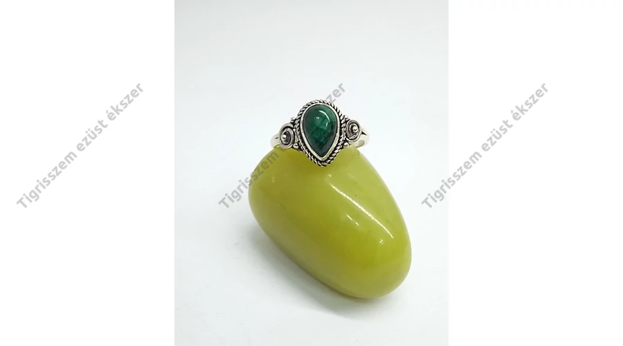 Ezüst gyűrű malachit kővel 54-es