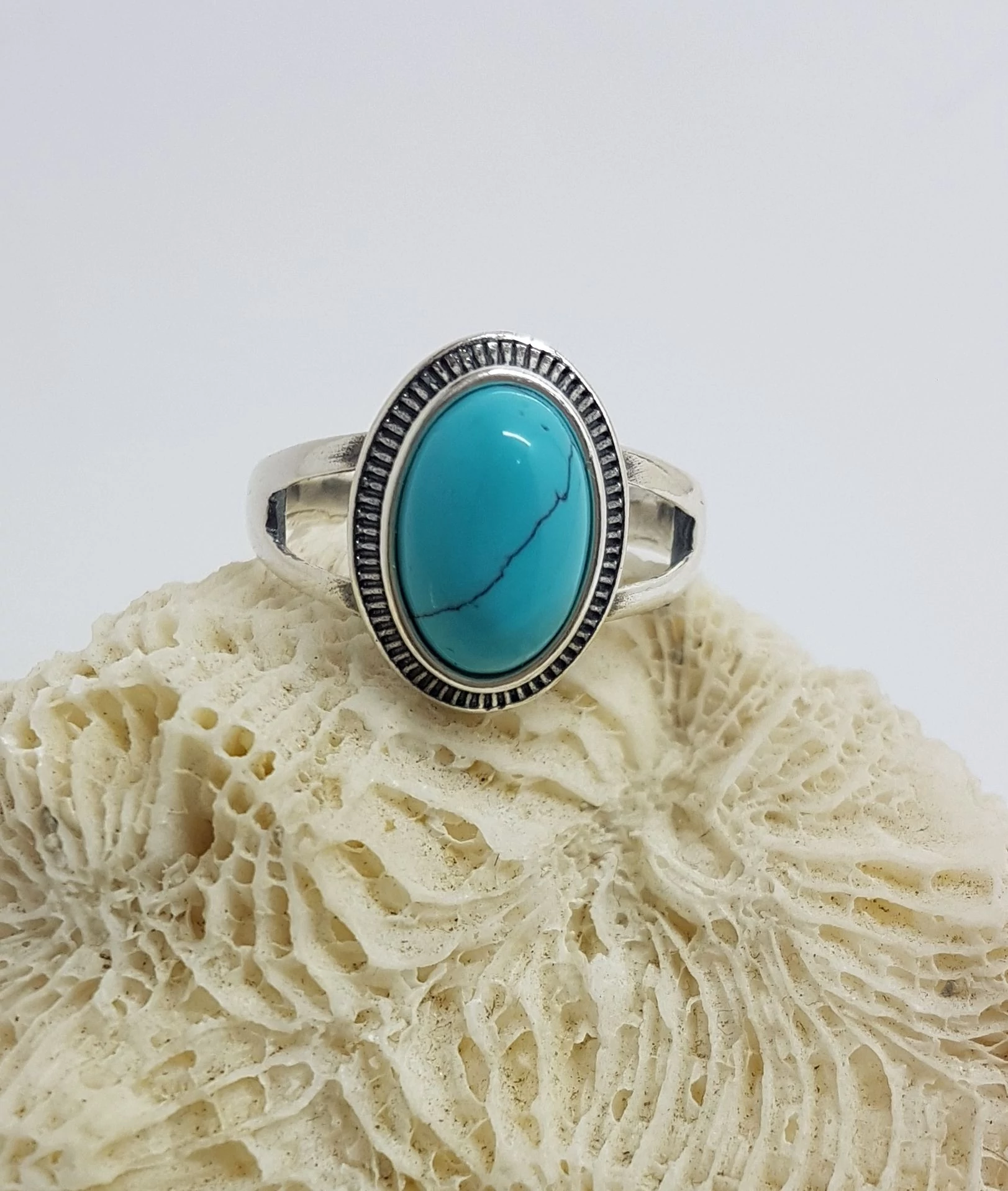 Ezüst gyűrű türkiz ,antikolt,ovális 59-es