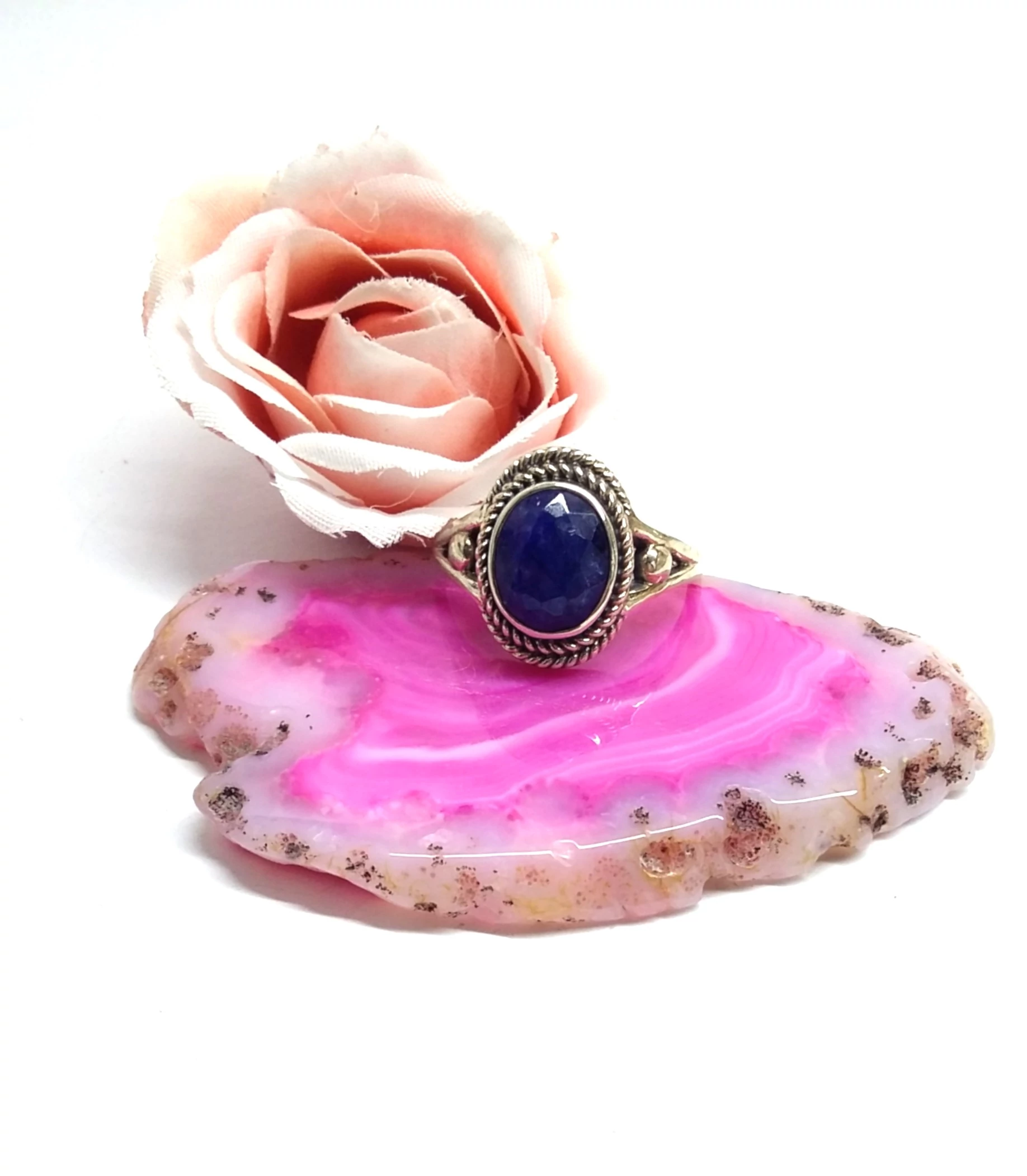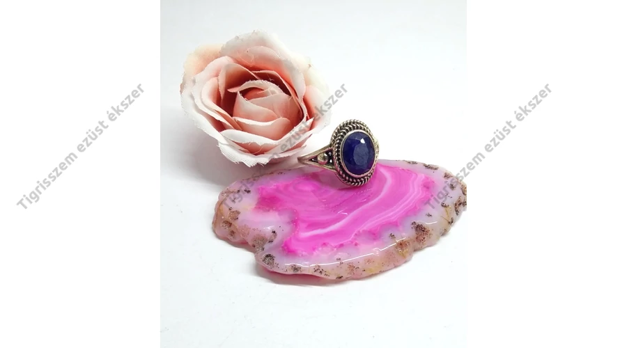 Gyönyörű, különleges ezüst gyűrű VALÓDI ZAFÍR kővel.Antikolt. 925-ös sterling ezüst Magyar fémjel.59-es méret |