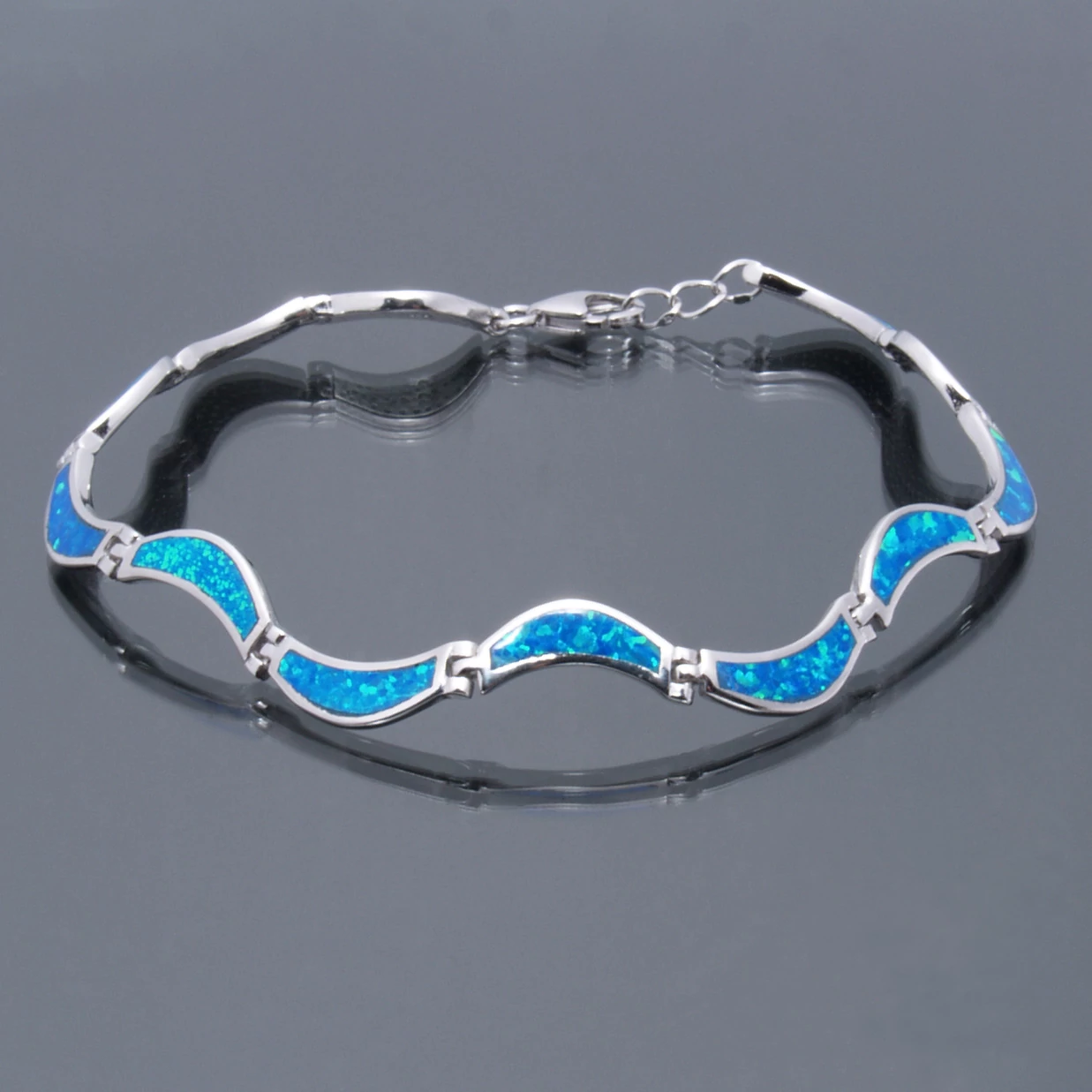 Ezüst karkötő OPÁL ,kék hullámos