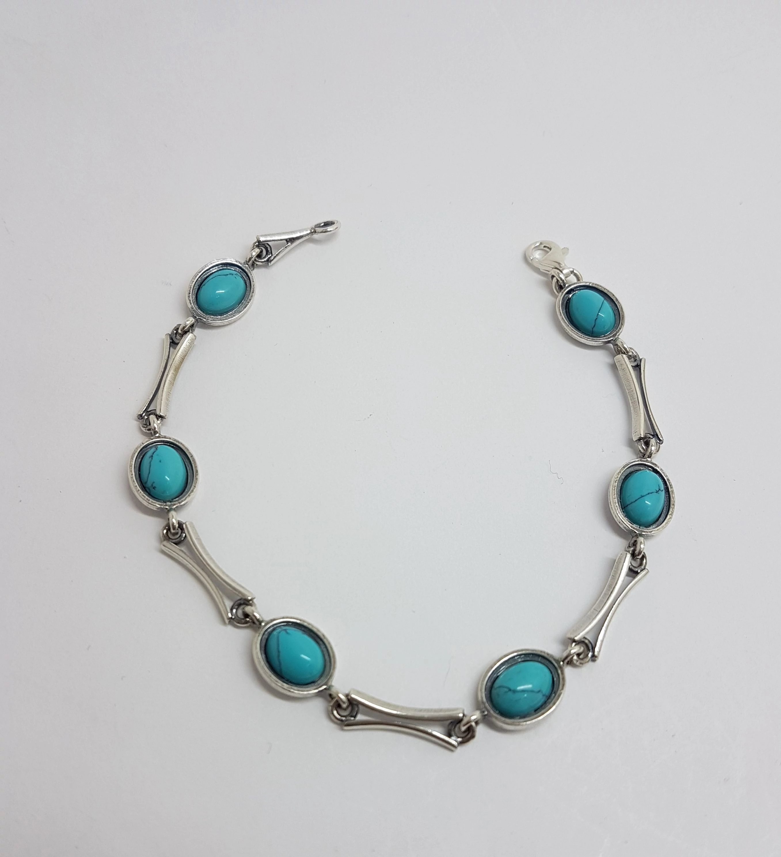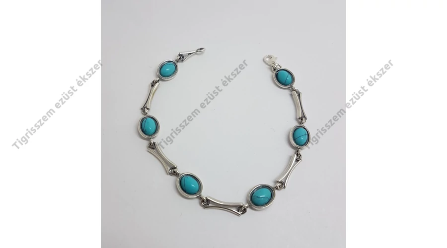 Ezüst karkötő ovális türkiz kövekkel ,antikolt 20 cm