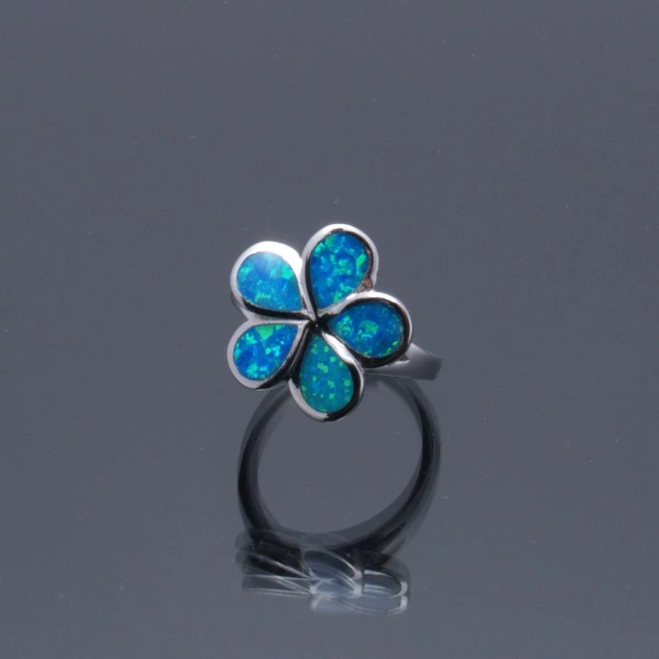 Különlegesen szép női ezüst gyűrű ,"kisvirág" forma kék színű OPÁLLAL,ródiumos. Minőségi kidolgozás. 925-ös finomság. Magyar fémjellel ellátva. |
