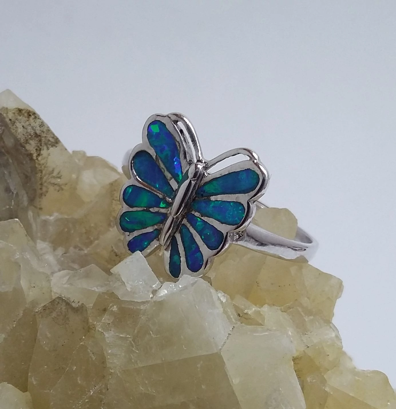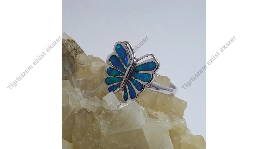Ezüst kék OPÁL gyűrű,lepke 63-as