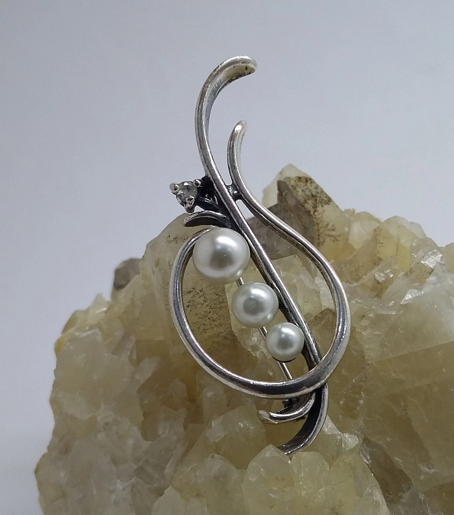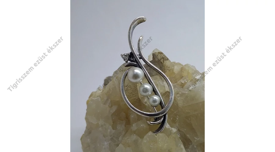 Gyönyörű ezüst kitűző 3 db édesvízi gyönggyel.Antikolt. Magyar fémjellel ellátva,925-ös sterling ezüst Minőségi kidolgozás! |