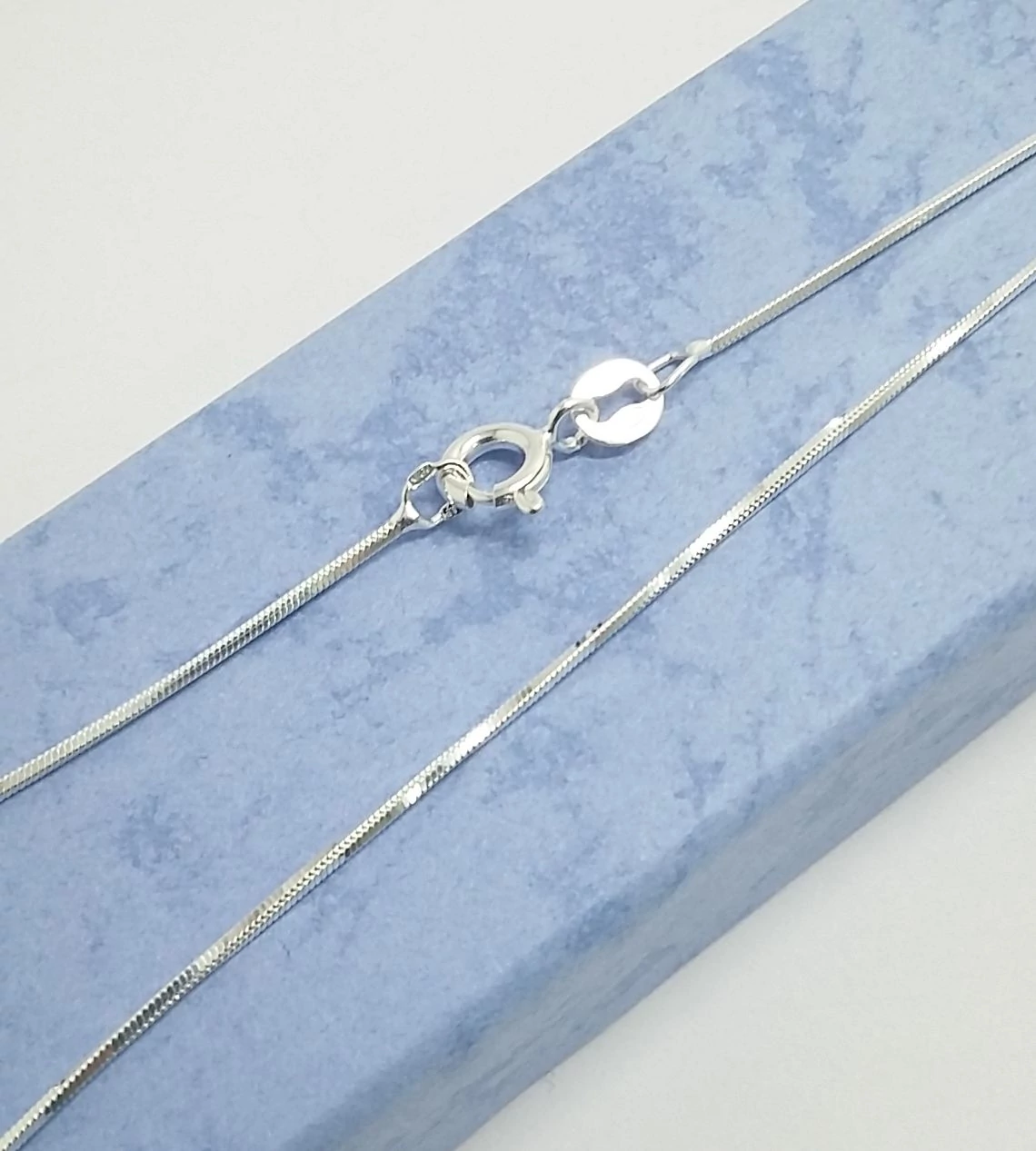 Ezüst lánc vékony szögletes kígyó.50 cm