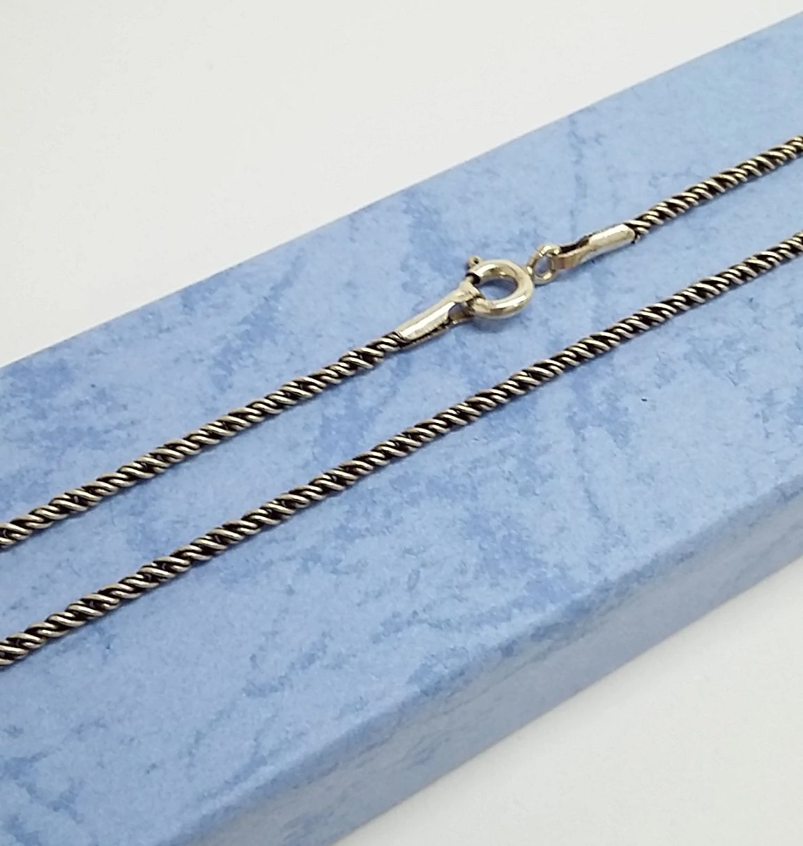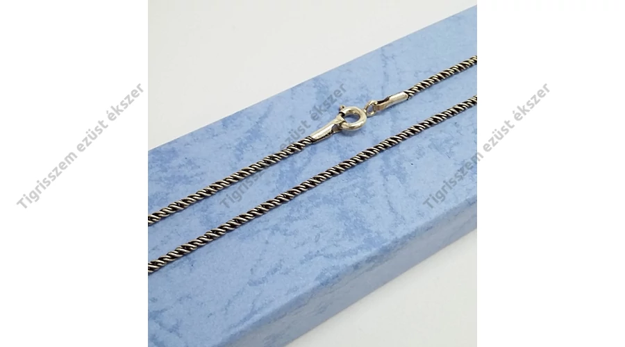 Nagyon szép,különleges antikolt csavart ezüst lánc.80 cm hosszú Minőségi kidolgozás. Magyar fémjelzéssel ellátva,925-ös sterling ezüst. |