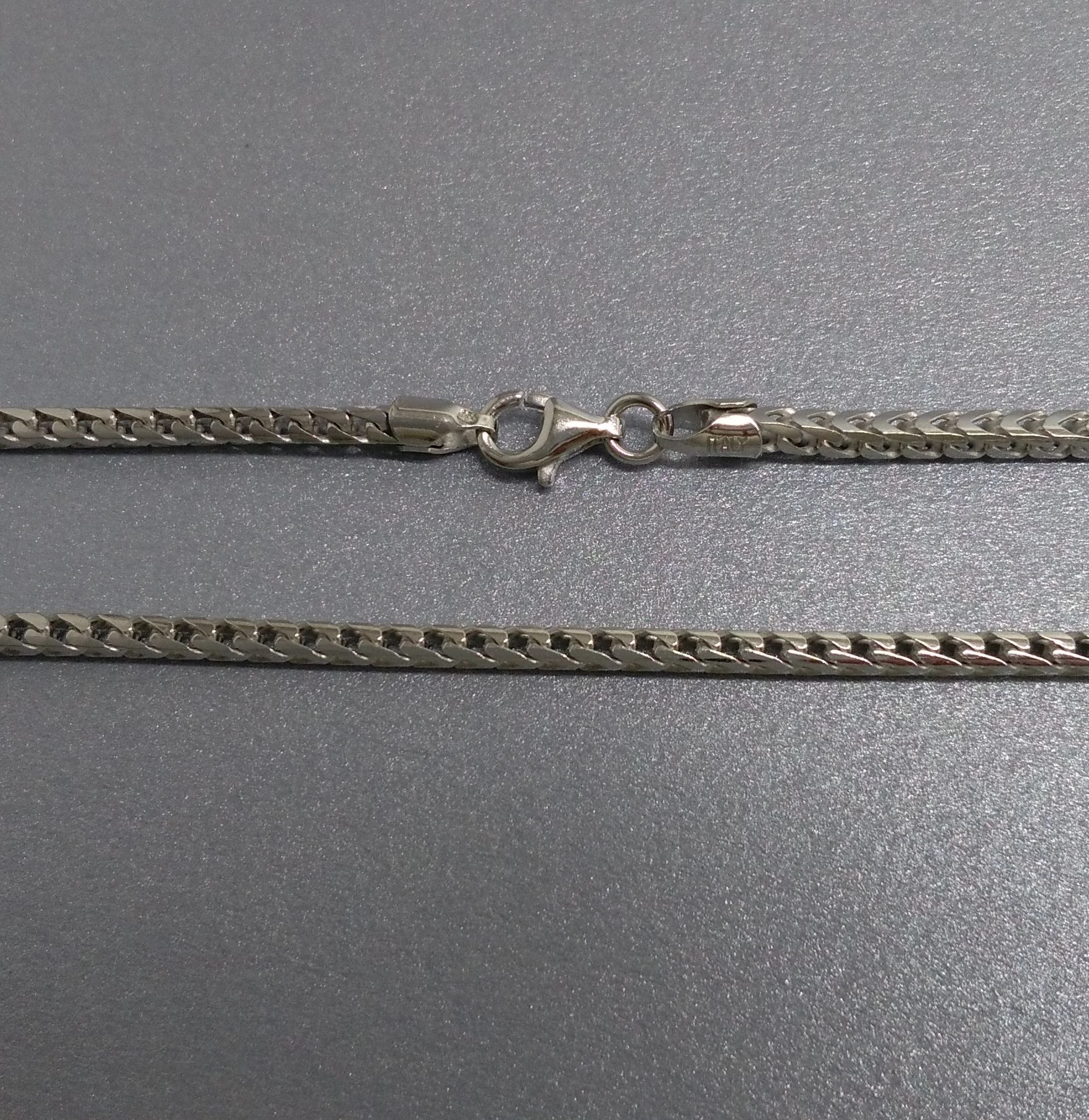 Gyönyörűen kidolgozott,vastag ezüst lánc fonott mintával,ródiumos bevonattal(nem színeződik el)lánc. 55 cm hosszú.Unisex ,nőnek és férfinak egyaránt jó,3 mm x 3 mm-es szögletesen szövött. Minőségi kidolgozás.Magyar fémjelzéssel ellátva.925-ös sterling ezüst. |