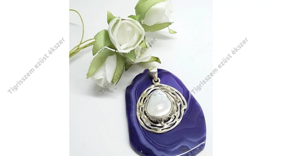 Gyönyörűen kidolgozott,különleges ezüst medál egy nagy méretű barokk gyönggyel. Minőségi kidolgozás.Magyar fémjel. 925-ös sterling ezüst |