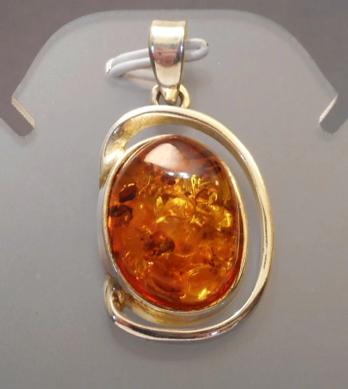 | Nagyon szép ezüst medál egy gyönyörű 25x17mm-es ovális méz színű borostyánnal. | |