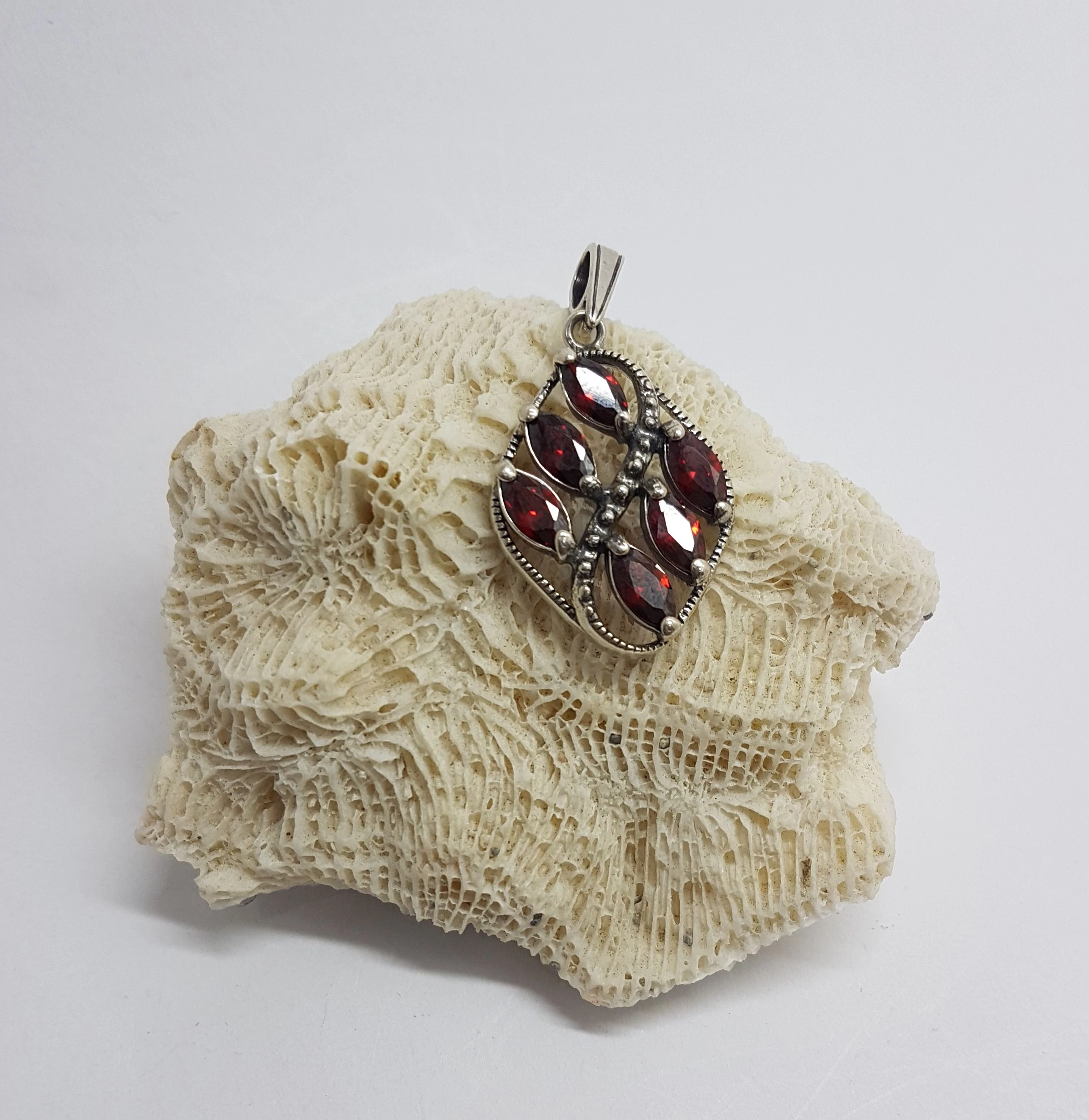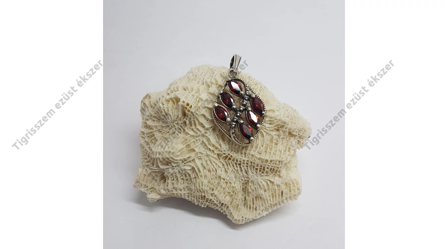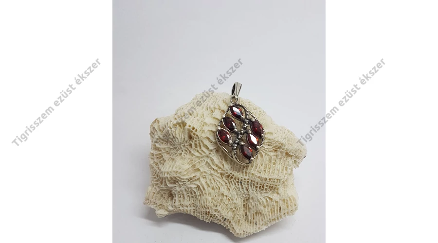 Gyönyörűen kidolgozott,egyedi ezüst medál.Egyenként csiszolt,6 db zabszem forma, CSEH GRÁNÁT kővel. Minőségi kidolgozás. Magyar fémjel.Antikolt. 925-ös sterling ezüst Fülbevalót is tudunk adni hozzá,pluszban. |