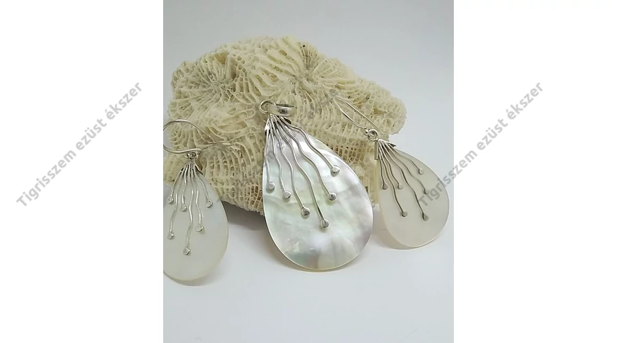 Ezüst medál és fülbevaló szett,gyöngyház