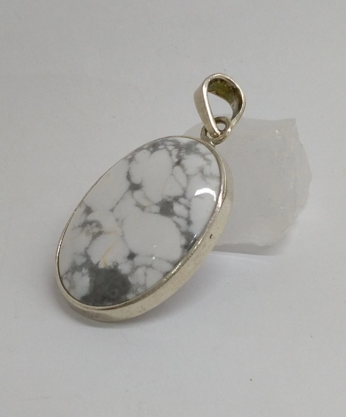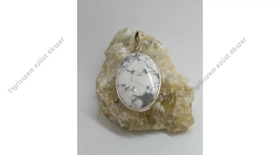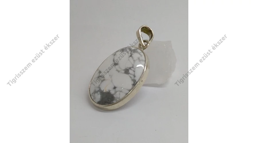 Gyönyörű kézi munka,ezüst medál HOWLIT kővel.Ovális forma. Minőségi kidolgozás. Magyar fémjelzéssel ellátva.925-ös sterling ezüst |