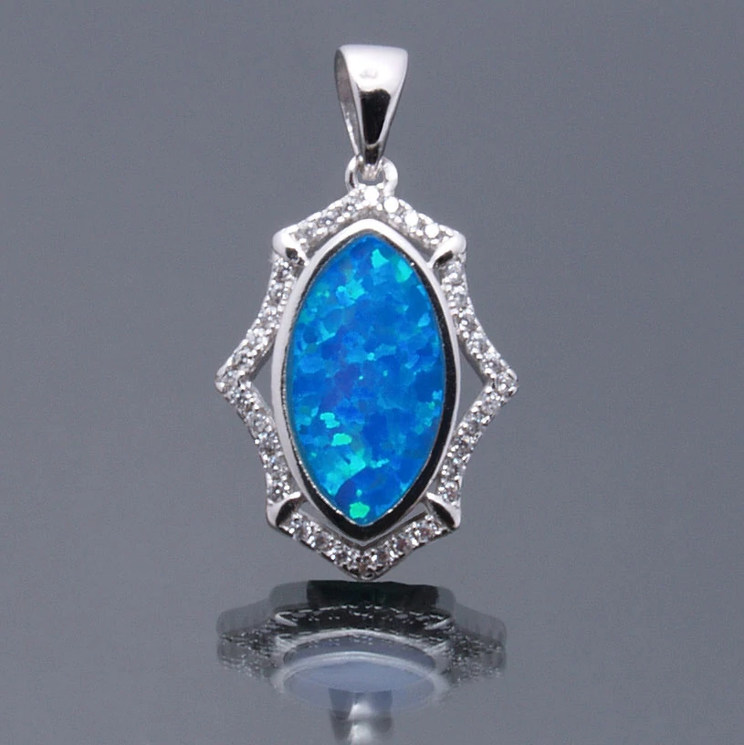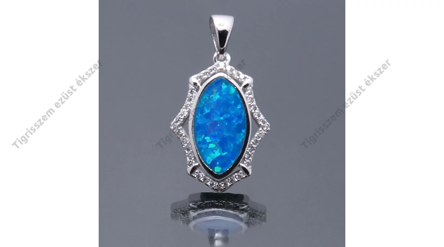 Gyönyörű ezüst medál kék opállal és fehér apró cirkóniákkal kirakva körben. Minőségi kidolgozás,ródimos bevonat. Magyar fémjel. |