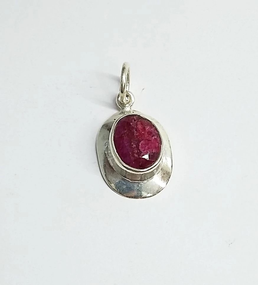 Ezüst medál rubin kővel,ovális