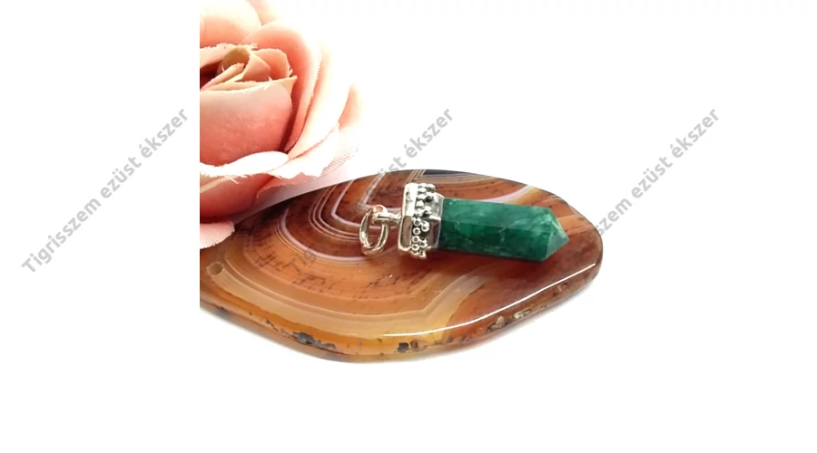 Gyönyörű, különleges, VALÓDI smaragd köves ezüst medál,csúcs. Minőségi kidolgozás.Magyar fémjel. 925-ös sterling ezüst |