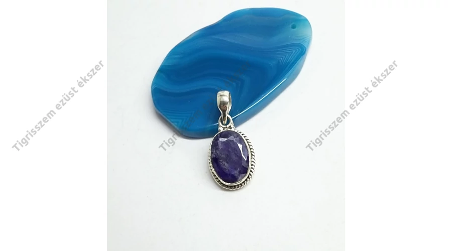 Ezüst medál zafír kővel,ovál
