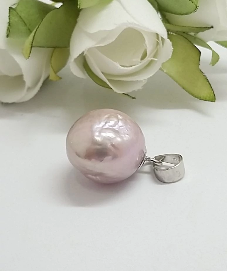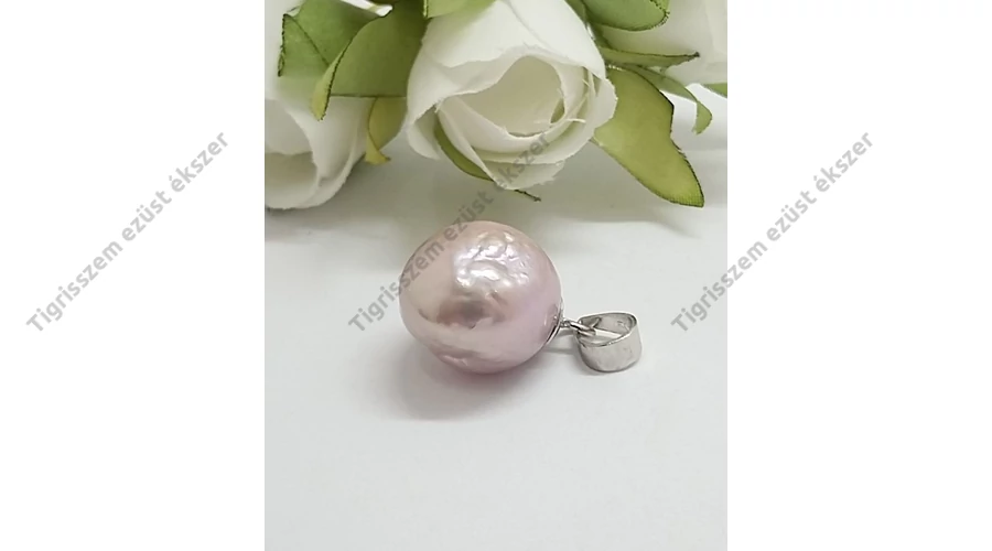 Ezüst medál gyönyörű és különleges BAROKK GYÖNGYBŐL. Halvány rózsaszínű. 925-ös sterling ezüst Magyar fémjel. |