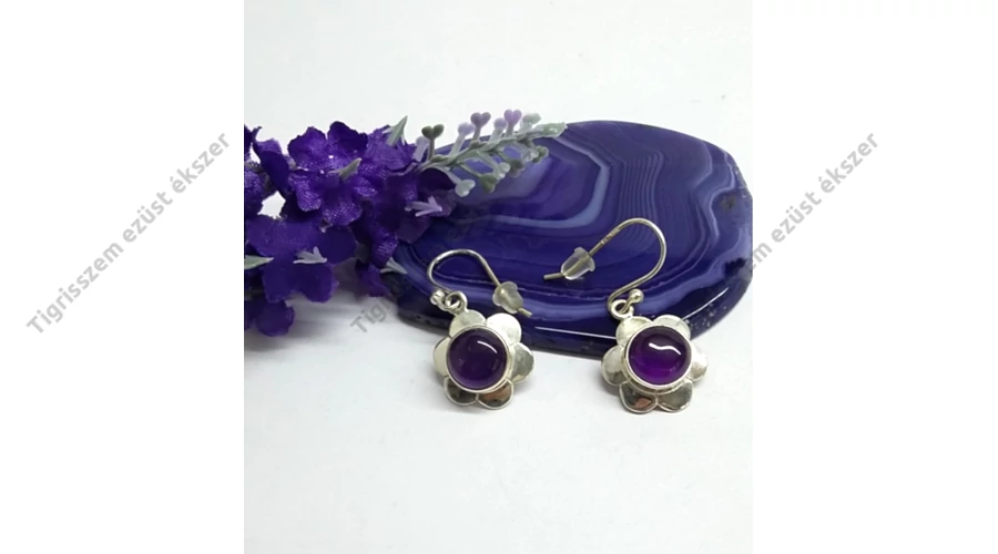 Ezüst női fülbevaló ametiszt kővel