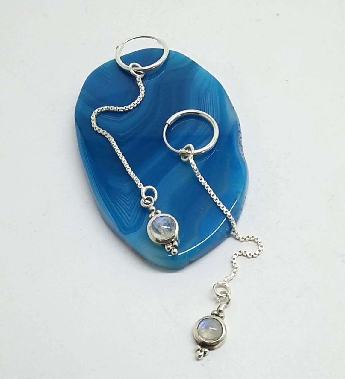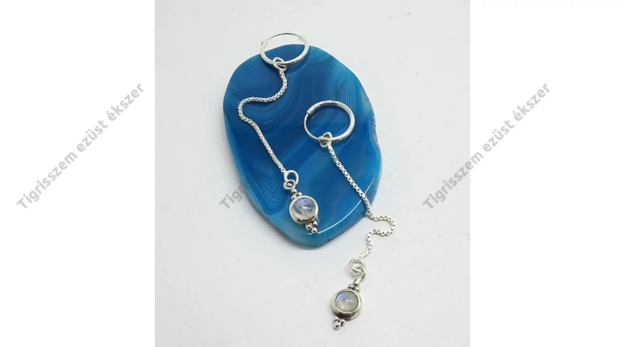 Ezüst női fülbevaló holdkővel,láncos